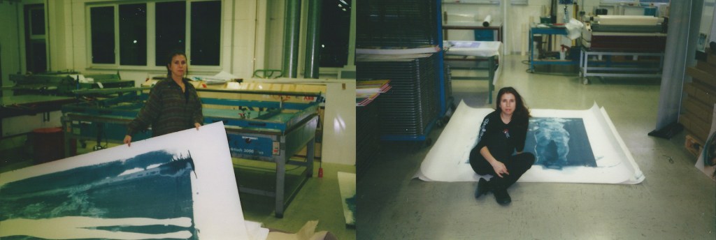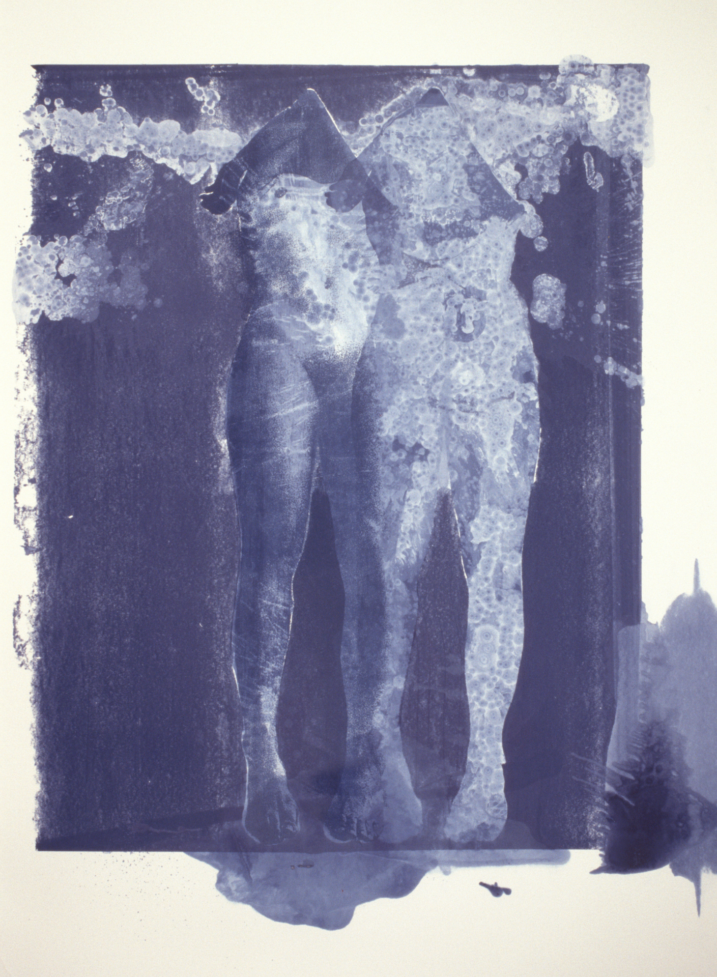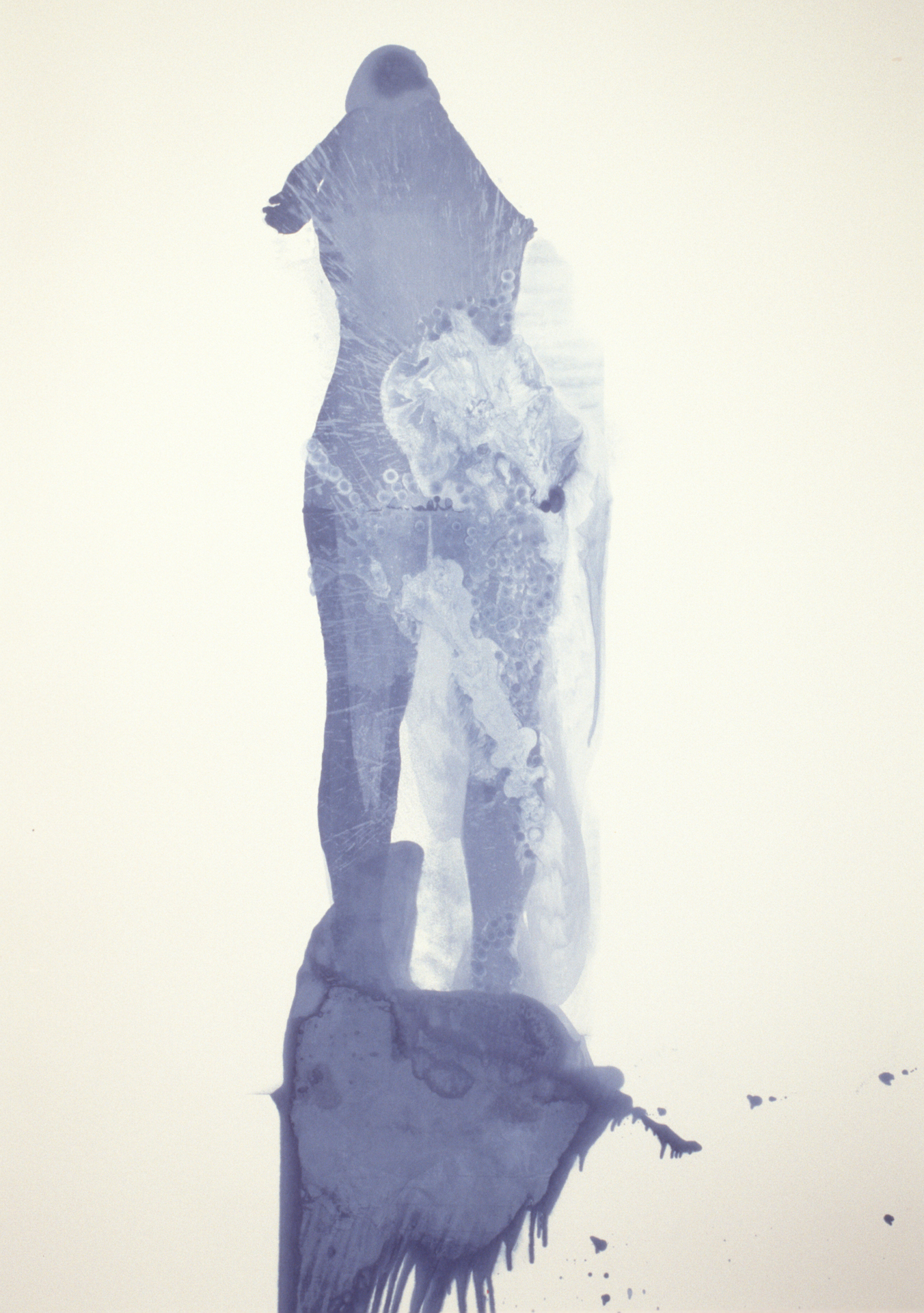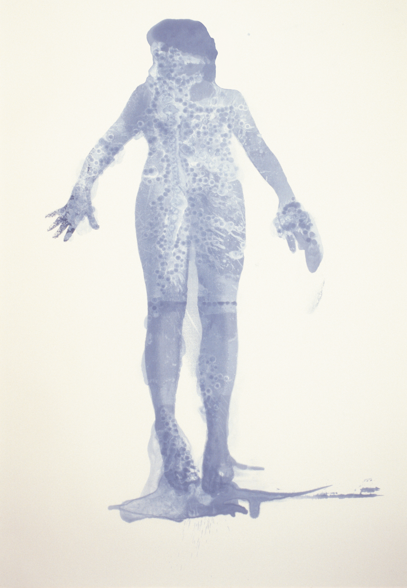 The element of ‘temporality’ in these unique screenprints played an important role in my representation of the human body. Unique prints, like the body, adhere to a life cycle and will eventually decay. There is a fundamental connection between my method of working and the representation of the human body. The work was a hybrid of controlled incidents in which works, to a large degree, made themselves. I describe them as ‘organic’, not only because of the form but also due to the method of working. The images were made by painting on screens used in silkscreen technique and pouring solvents while printing. It was printing approached in a wider sense which allowed keeping the trace of the direct effect of chemicals. Such a method of printing is a creative process itself. The results are abstracted forms communicating by means of allusions, just on the border between suggestion and association. The prints also become a form of memory revealing part of the process of the labour of their making. The question of what properly constitutes printmaking, of printmaking techniques, is bypassed by the condition of its actuality.