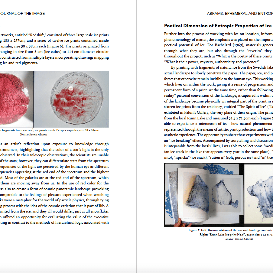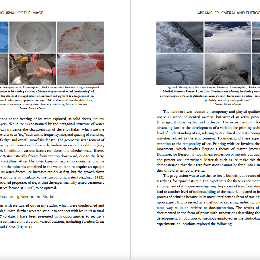 Iwona Abrams’ paper ‘Ephemeral and Entropic Properties of Ice as an Image-making Methodology’ presented at Sixteenth International Conference on The Image at Université Paris 1 Panthéon-Sorbonne has been published in The International Journal of the Image.